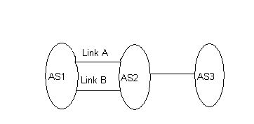 4) Multi-Exit-Discriminator - When 2 Autonomous Systems are linked to each other using more than 2 links then MED attribute will be used in finding the preferred route. For eg. in the fig. , AS2 will announce the route to AS3 in 2 different places. If it announces only in one place and that link goes down then there would be a problem. So, it announces in both the places and says that it prefers one over the other with the MED attribute.