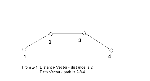 In path vector in addition to the cost you announce the entire path to the neighbours.For eg. in the above figure if you need to send packets from 2 to 4, distance vector routing will say that the distance is 2, whereas in path vector along with the distance the actual path is also sent.